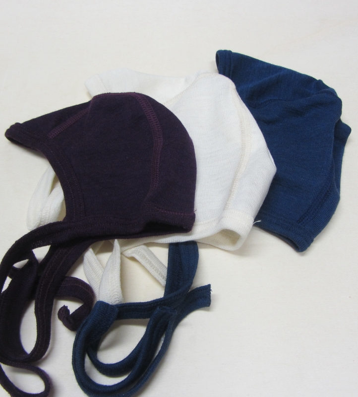 Ein feines Häubchen für die Kleinsten aus weichem Wolle-Seide Feinstrick. Durch das feine Einfassband aus Jersey, wird das Baby-Köpfchen sicher umschlossen. Die langen Bindebänder können über den Bauch nach hinten befestigt werden. So bleibt der kleine Hals frei.