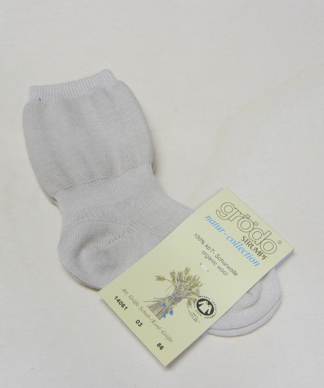 Baby-Kniestrümpfe, genau richtig für die kleinen Beine. Der kleine Kniestrumpf, auch Specksocke genannt, ist speziell auf die kleinen Baby-Beine abgestimmt. Er ist links-links fein gestrickt und am Knöchel ist ein Teil in Rippen gearbeitet, so bleibt er an seinem Platz.