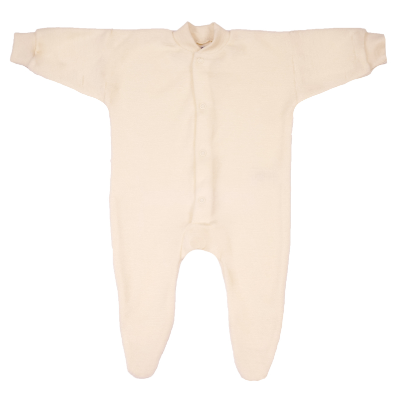 Genau das richtige Kleidungsstück um rundum kuschelig warm schlafen zu können. Der Wollfrottee Overall aus reiner Wolle aus kontrolliert biologischer Tierhaltung, mit Fuß und langen Armen. Die Beinchen sind unten zu, hält die Füsse auch schön warm. Am Hals und an den Armen sind weiche, fein gestrickte Bündchen angenäht. Druckknöpfe verschließen diesen wolligen Overall. Der Woll-Frottee Schlafanzug sorgt dafür, dass das Kind warm bleibt ohne zu schwitzen.