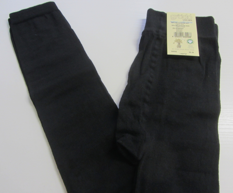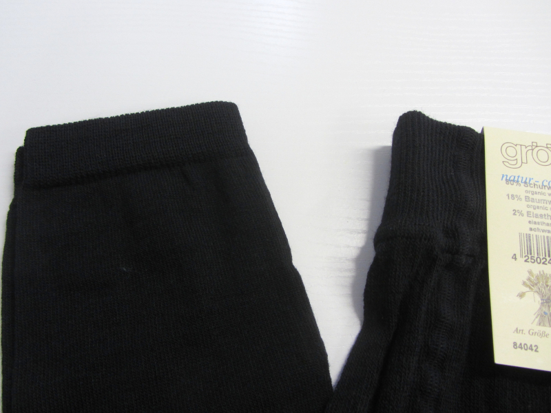 Damen Wollstrickleggings glatt gestrickt, aus 80% Schurwolle aus kontrolliert biologischer Tierhaltung, 18% Baumwolle aus kontrolliert biologischem Anbau und 2% Elasthan. Die 2% Elasthan halten die Strumpfhose in Form und erhöht ihre Lebensdauer. In der Taille ist ein breiter weicher Bund und hinten ist ein breiter Zwickel bis zur Taille. Schmales Bündchen am Beinende.