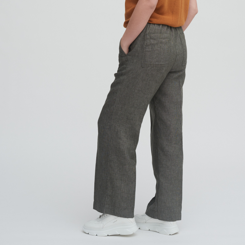 Livingcrafts Damen Leinen Hose lang, 100% Natur-Leinen, graphit-melanche,thym