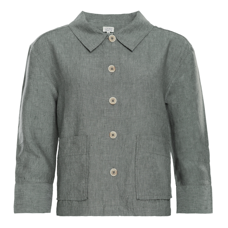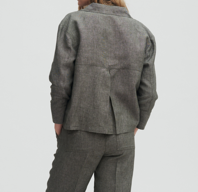Livingcrafts Damen Leinen Jacke , 100% Natur-Leinen, graphit-melange, thym