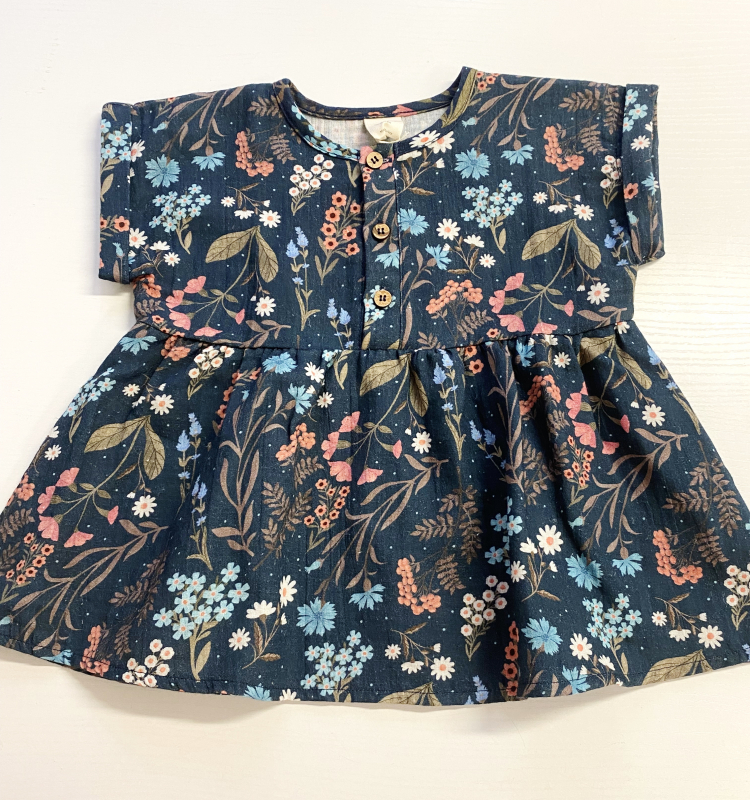 Walkiddy Musselin Bluse kurzarm, 90% Bio-Baumwolle (kbA) 10% Hanf, marine bunte Blumen
