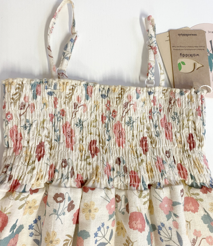 Das superleichte Sommerkleid für ihr Kind! Es ist aus weichem und leichtem Baumwoll-Hanf-Musselin in Crashoptik, weit und locker geschnitten. Das oberteil ist mit feinen Gummifäden durchzogen, liegt so leicht und trotzdem locker oben und unter den Armen an und dehnt sich gut für bequemes An- und Ausziehen. Ca. 1cm breite Träger sind verstellbar. Der untere Teil des Kleides ist gerafft angenäht. Das Kleid ist in der Größe 116 ohne Traeger 62cm lang mit den variablen Traegern kommen noch 10 bis 14cm hinzu oder sogar noch etwas zu kürzen.